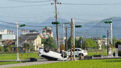 【記者林周龍/五結報導】五結鄉協安路與公園路三段交叉路口,昨日下午發生2輛休旅車相撞車禍,其中一輛翻覆路面四輪朝天呈烏龜翻,另1輛車頭嚴重受損,所幸沒人…