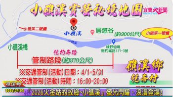 螢火蟲生態導覽活動訂於4月8日中午12時開放線上報名,額滿為止,敬請民眾把握機會!活動期間將實施交通管制措施,管制時間為4月1日至5月31日,每日16時至20時,共計4小時。管制路段自匏杓崙路137-3 號起,至小礁溪橋(小礁溪一號橋上方約300公尺以上路段)止,屆時請用路人配合交管人員引導,共同維護交通秩序與生態環境,活動相關資訊,請至「真愛趣礁溪」官方粉絲專頁或「礁溪觀光旅遊網」查詢。