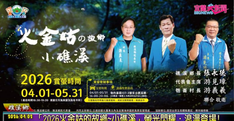 (記者蕭夢麟/礁溪報導)春夜螢光閃爍,「2026火金姑的故鄉-小礁溪」邀您共舞!礁溪鄉公所致力推動生態旅遊,是宜蘭第一個透過公私協力合作的賞螢區,為提升民眾對自然保育認識,礁溪鄉公所每年規劃辦理螢火蟲免費生態解說活動,歷年皆獲熱烈迴響,報名情形踴躍。今年活動訂於4月8日中午12時開放線上報名,邀請民眾一同感受夜晚螢光點點的魅力。