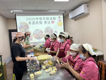 (宜蘭大新聞中心/宜蘭報導)宜蘭家扶中心溫媽媽義工隊已經連續27年在中秋節前夕號召月餅製作活動,尤其今年因為物價高漲,為減輕弱勢家庭經濟上的負擔,但又能維持過節的氣氛,溫媽媽仍決定親手製作,溫媽媽們於6月份開始討論與預訂材料,相同的食材今年價格卻已提升不少,從9/30日起,連續三天在家扶展開愛心月餅製作工程,今年度是由溫媽媽義工隊隊長-鄭金雪擔任總召,招集全體隊員投入製作,各個踴躍出席,盡一份力。