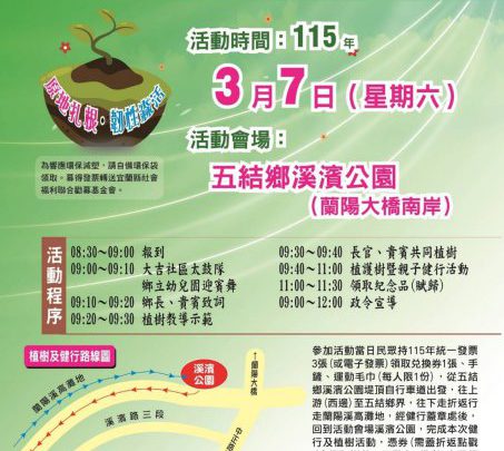 五結鄉植樹暨親子健行活動3/7日溪濱公園登場