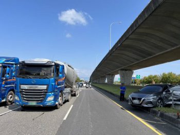 羅東警分局提醒,191線道大型車與自小客並行頻繁,尤其假日車輛來往頻繁,車輛駕駛變換車道時,應確實確認側後方車況,保持安全距離與視野死角警覺,切勿任意搶道或急切行駛,以免類似事故再度發生。