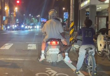 由於行進過程搖搖晃晃相當不穩,男童差點被甩到對向車道。尤其當機車準備左轉時,被牽引的男孩更一度重心不穩,差點連人帶車摔倒。後方駕駛見狀,紛紛放慢車速不敢靠近,深怕發生意外。有其他民眾指出,衣物只綁在腳踏車側邊的手把上,重心會比較不穩定。