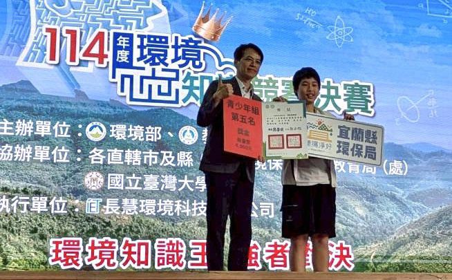(宜蘭大新聞中心/宜蘭報導)環境部15日在臺灣大學辦理114年度環境知識競賽全國賽,競賽組別分為學童組、青少年組、青年組及社會組,代表宜蘭縣出賽的20位菁英與全國各縣市選手同場較勁,比賽最終由凱旋國中曹榮恩獲得青少年組第五名。