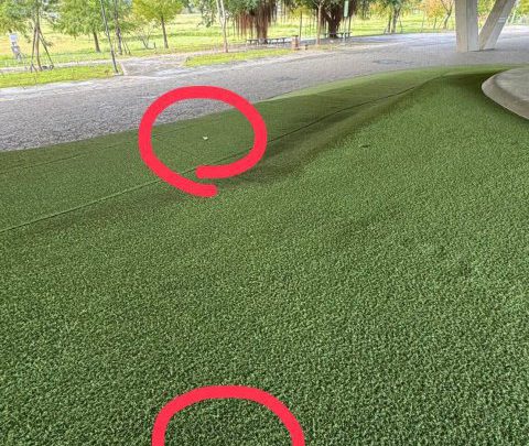【記者林周龍/冬山報導】柔軟的人工草皮,竟淪為野鴛鴦作愛的炮床,有民眾星期假日帶著小朋友到冬山橋下親子遊樂場溜滑梯,不料發現有人把使用過的保險套隨手丟棄在草皮上,慌忙之下趕緊帶著孩子離開現場,並向冬山鄉公所反映,相關人員表示,該場所係縣府觀光局管轄,讓當事人感到相當無奈。