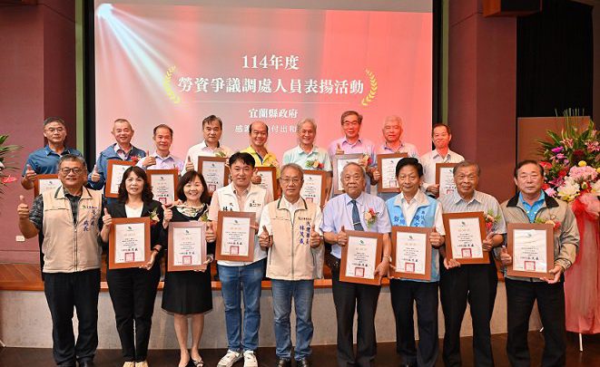 (宜蘭大新聞中心/宜蘭報導)宜蘭縣勞資爭議和解率再創佳績!宜蘭縣政府今(23)日舉辦「114年度勞資爭議調處人員表揚感謝大會」,由林茂盛代理縣長親自頒獎,表彰這群默默守護勞資關係的幕後英雄。根據統計,113年度宜蘭縣獨任調解人的調解和解率高達81.21%,不僅遠超過全國平均值,更展現了宜蘭在建構和諧勞動環境上的卓越成效。