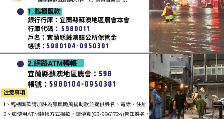 協助災民重建家園 蘇澳鎮公所開設鳳凰颱風捐款帳戶