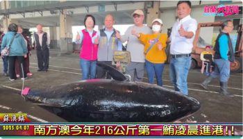 (記者洪方生/蘇澳報導)蘇澳籍漁船「全昌隆168號」首傳捷報,捕獲今年216公斤第一鮪黑鮪魚,今(7)日凌晨1點28分返抵達南方澳漁港。