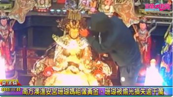 (記者洪方生、林周龍/蘇澳報導)供奉珊瑚媽祖南方澳進安宮今(5)日清晨發生重大竊案,長年保佑漁民及當地民眾的珊瑚媽祖,身上的金項鍊與珊瑚飾品被竊賊侵入偷光,廟方估計損失高達上千萬元,信徒更說損失可能逾3千萬。警方獲報後已掌握犯嫌身分,其行竊後搭乘計程車沿北宜公路往北竄逃,正全力追緝中。