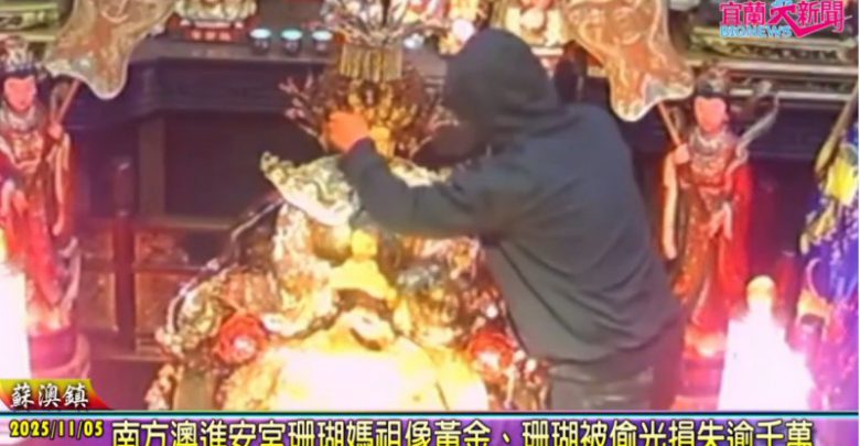 蘇澳警分局今天凌晨12時40分許接獲南方澳進安宮廟保全連線訊息,警方立即派員前往,當時宮廟外圍無異狀,凌晨4時許廟方人員開廟門欲上香時才發現神明的佩件首飾遭竊,警方立即派員前往該宮廟採證並調閱監視器,警方目前成立專案小組,全力偵辦中