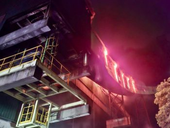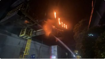 台泥蘇澳廠輸送帶凌晨突起火燃燒消防出動大隊人車救援