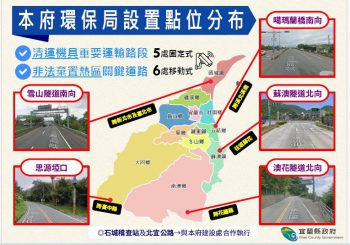 林茂盛代理縣長今(3)日出席記者會時表示,為徹底斬斷犯罪作業鏈,環保局將規劃於重要聯外道路如台2、台7甲、台9縣等等關鍵道路節點,或自行設置智慧監控系統,或結合其他機關資源,整合後透過「蘭陽智慧千里眼計畫」建立三道預警防線。