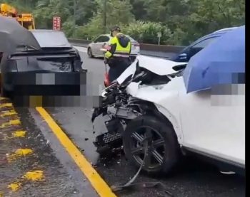 據了解,今天上午11時許游姓男子(26歲)開車沿國道5號內側車道北上,不料經過8K處時疑因未注意車前狀況,撞上由黃姓男子(44歲)駕駛的自小客車,緊隨而來的吳姓男子(43歲)也煞車不及,再次追撞游男車輛釀成連環事故。