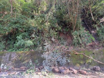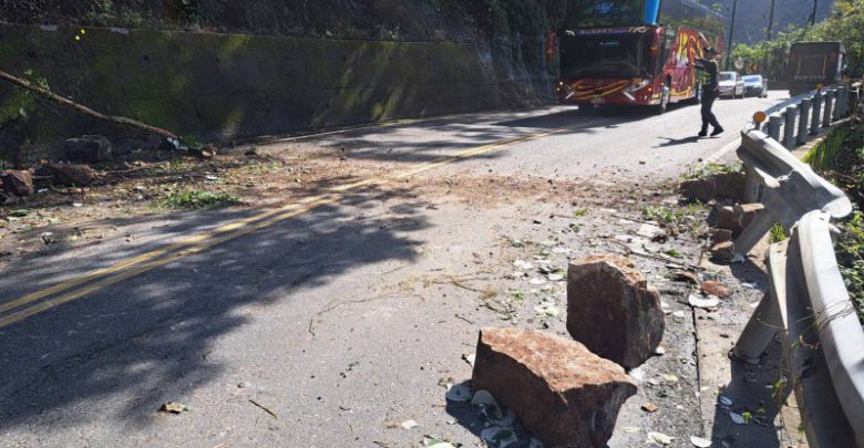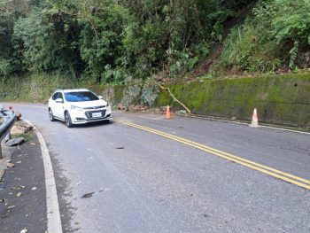 現場受損車輛已於9點10分左右移至前方較寬處之路側停放,現場由派出所警員協助指揮於9點15分採單線雙向通行, 工務段巡查人員於9點35分抵達現場,進行路面落石清理,於10點完成,恢復雙向通行,坍方地點路側已擺放交通錐增加警示,夜間另加設爆閃燈警示。