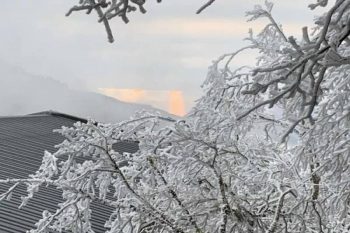 【記者林周龍/大同報導】受到霸王寒流南下影響,海拔2000公尺的太平山森林遊樂區,因水氣不足,天空未飄下綿綿雪花,不過從今(8)日清晨起,山區陸續出現冰霰,林木枝條可見霧淞,投宿在太平山莊的遊客,紛紛走出戶外觀賞大自然美景,有遊客表示,第1次在台灣看見冰霰、霧淞內心到相當興奮。