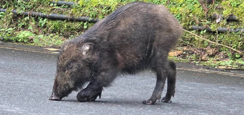很多來過太平山國家森林邊樂區的遊客,都曾與各種野生動物不期而遇,不論是蹦蹦跳跳的黃喉貂、習以為常的臺灣獼猴,或是在林間悠閒漫步的帝雉、藍腹鷴、山羌、長鬃山羊等,這些大自然野生動物畫面總讓人驚喜及會心一笑,不過,能在太平山看到山豬,其實機會並不算多,昨天中午有遊客園區在中間服務站恰好捕捉到這難得的一幕