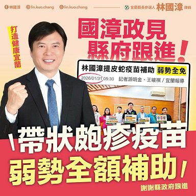 (宜蘭大新聞中心/宜蘭報導)針對宜蘭縣政府今(22)日宣布將帶狀疱疹疫苗弱勢全額補助納入 115 年度預算追加計畫,林國漳對此表示由衷肯定。