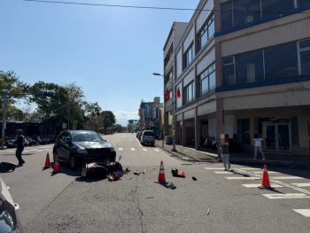 【記者林周龍/宜蘭市報導】宜蘭市宜興路一段與新民路岔路口,昨(5)日中午12時發生一起交通事故,造成機車騎士身體多處挫傷,經救護車送往陽明醫院救治,車禍發生原因及肇事責任,正由警方調查釐清中。