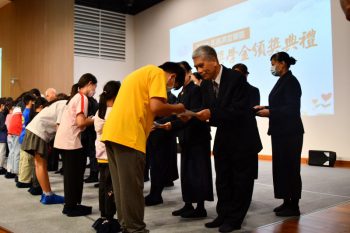 靜思精舍德暐法師以靜思語「不要小看自己,因為人有無限的可能」鼓勵同學們,法師勉勵:儘管現在暫時受人幫助,以後也會有能力幫助人,感恩慈濟志工陪伴。新芽獎學金不僅只給成績好的人,也給品行端正,超越自己的人。