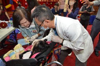 今天活動包含縣內各國中小、高職之特殊教育班級教師、教師助理員、學生及家長,連同牙醫師及工作人員等,共計575人參與。本次活動中最大亮點就是在『愛的交流』時間中,由林姿妙縣長、宜蘭扶輪社林永固社長、宜蘭縣牙醫師公會楊家華理事長及陽明大學附設醫院楊純豪院長齊聚一起幫特殊需求學生潔牙,希望透過親身的體驗能感受特殊生潔牙的不易,並讓社會各界更重視此議題。