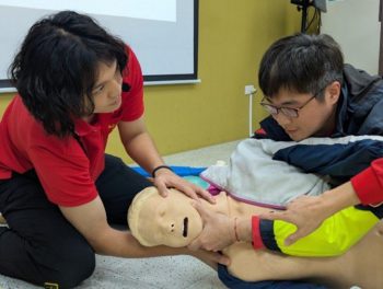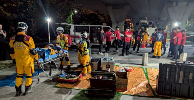 除了空中支援,各類機能型義消的專業能力也全面進化。救護義消引進了「出血止血回饋系統」與「QCPR多功能訓練模型」,透過數據化回饋精進急救技術;水域義消與特搜義消則分別在實際落水救援與困難地形破壞作業中展現精實訓練成果。