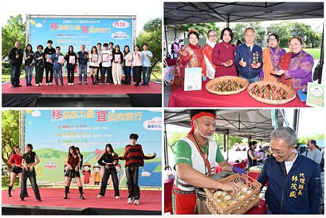 活動現場有印度朋友帶來的傳統舞、緬甸新住民姊妹分享民俗舞蹈、宜萱新住民兒少歌舞團秀出精緻串燒式演出、來自中國的姊妹帶來幸福女神團漢族舞蹈,還有來自大南澳的客家舞蹈分享多元化的舞風、羅東高商原住民舞蹈團帶來熱情活力族舞、愛你yo-印尼舞團的多元舞蹈和聚集多個國籍新住民的新聲音合唱團等精湛的演出,就是要帶給大家「新意盎然」的多元文化秀。一連串精湛的演出讓現場民眾更認識臺灣,見證閩、客、新、原的文化大融合。