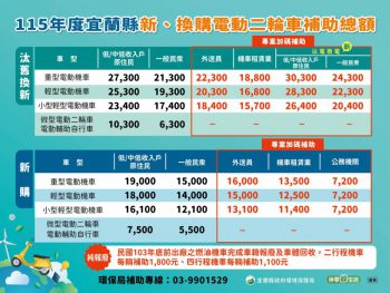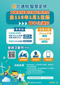宜蘭縣115年機車汰舊換新補助與定檢E化登錄方式: