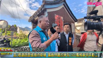 林聰池議員指出,在接獲兩位村長陳情後,深感地方道路品質攸關民眾行車安全,立即著手協調縣府相關單位,也成功向縣府爭取到1500萬元預算進行路面改善工程。此次工程將針對從礁溪中山路一段路口一直到191甲縣道,總長約3公里多路段進行瀝青混凝土重新鋪設,徹底解決路面破損問題。議員也特別強調,完工後縣府至少兩年內不得開挖馬路,以確保路面品質,避免重複施工造成資源浪費。