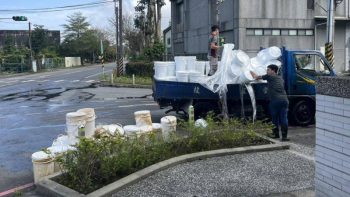 小貨車上液態肥料桶掉落地面發出惡臭造成虛驚一場