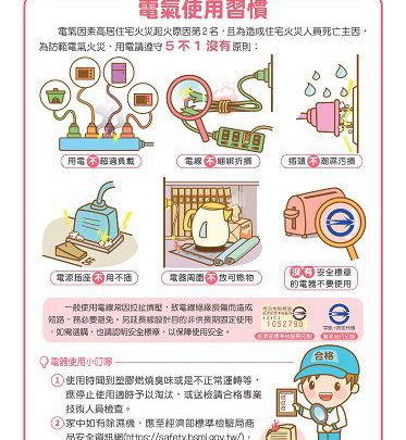 為了禦寒,電暖爐與電熱毯是許多家庭的必備品。消防局特別提醒,保暖更要保命,使用高功率電器時,請遵循電氣使用「五不一沒有」原則,包括「用電不超過負載」、「電線不捆綁折損」、「插頭不潮濕污損」、「電源插座不用不插」、「電器周圍不放可燃物」,以及「沒有安全標章的電器不要使用」。小小動作守護用電安全,保護一家人寒冬平安。