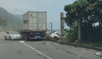 曳引車爆胎連撞5車 1車卡在邊坡所幸沒人受傷