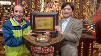 参香儀式結束後,宜蘭著名文史工作者陳榮楷老師特別贈送抬頭「林國漳勤跑基層傾聽民意穩操勝選」藏頭詩給林國漳-縣長参選人為他加油打氣外,宜蘭縣餐飲協會林麗惠理事長,也贈送「馬到成功」雪花餅,祝福林國漳律師馬到成功,明年ㄧ馬當先選上縣長寶座為宜蘭縣民服務,現場支持者「蒜選」之聲不絕,在寒冷的天氣下,預先炒熱明年地方選舉熱潮。