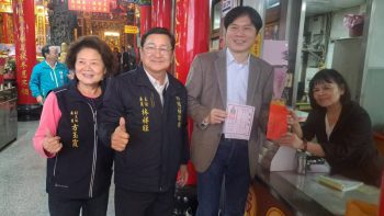 【記者林周龍/五結報導】民進黨提名縣長參選人林國漳最近勤跑基層,所到之處受到民眾歡迎,今(25)日下午林國漳在多位民意代表的陪同下,蒞臨四結福德廟参香禮敬,受到福德廟管理委員會全體委員熱烈歡迎,著名地方文史工作者陳榮楷老師特別致贈送藏頭詩,預祝林國漳律師高票當選,現場民眾「蒜選」呼聲不斷,在寒風細雨下炒熱現場氣氛。
