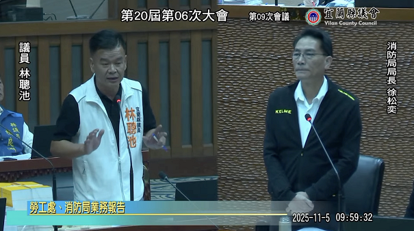 (記者蕭夢麟/宜蘭報導)宜蘭縣議會本次定期大會單位質詢中,林聰池議員針對消防安全提出創新建議,呼籲消防局通盤檢討宜蘭縣內消防車無法進入的巷道,並研議結合地方公所或村長,在這些巷道設置供公共使用的消防滅火器點位,以提升初期滅火效能,減少災害擴大。
