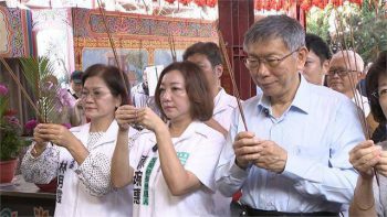 柯文哲排定4天輔選行程首日,今天上午與妻子陳佩琪、陳琬惠相偕,前往香火鼎盛的羅東中山公園福德廟上香,隨後前往附近的民生市場、開元市場,為前立委陳琬惠拉票。