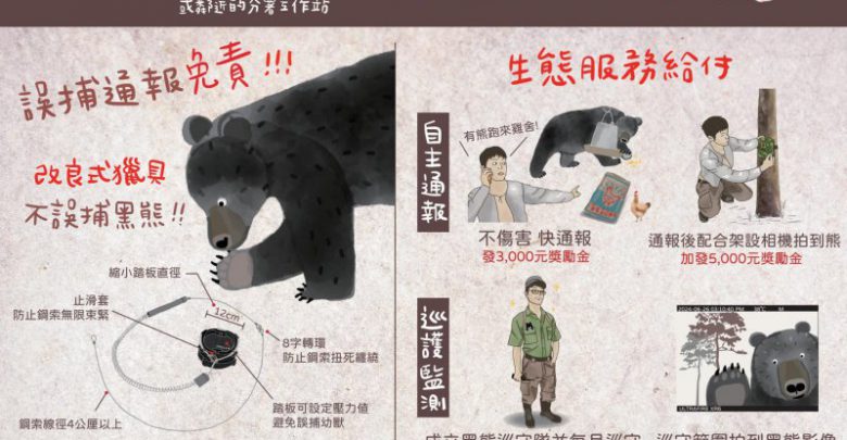 林業保育署宜蘭分署提醒,山區農友與部落族人如有防治獸害或傳統狩獵需求,請洽林業保育署宜蘭分署免費換發或申領可避免誤捕黑熊的改良式獵具;誤捕臺灣黑熊,只要立即通報協助救援,即不會咎責,發現黑熊入侵或受困,請在確認自身安全後,立即撥打1999或林業保育署免付費專線0800-000-930(您您您救山林)。