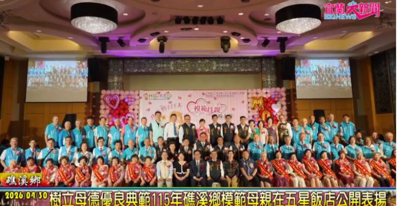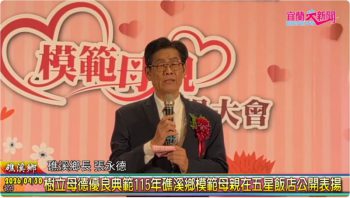 (記者蕭夢麟/礁溪報導)為迎接光輝燦爛母親節的到來,樹立母德優良典範,礁溪鄉公所特別選今(30)日,在五星級礁溪長榮鳳凰酒店,舉辦115年模範母親表揚活動。礁溪鄉長張永德賢伉儷親自於會場門口迎接,為18村模範母親佩掛彩帶及花環,並頒贈賀匾及禮品表揚,給予辛勤奉獻的母親最大肯定。