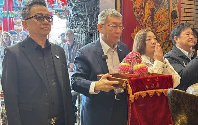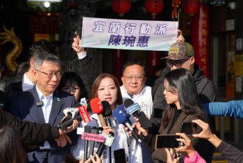 柯文哲今天上午前往四結福德廟參拜,並替民眾黨宜蘭縣長參選人陳琬惠站台,現場湧入大批支持者排隊合影,許多「小草」更拿出衣服、悠遊卡、iPad等物品請柯文哲簽名,氣氛相當熱絡,柯文哲被媒體問及陳佩琪是否會代夫出征參選,柯文哲堅決表示不會,但是會幫人站台助選。