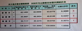 民進黨冬山鄉長初選民調開封 陳鏗芳以36%支持率勝出