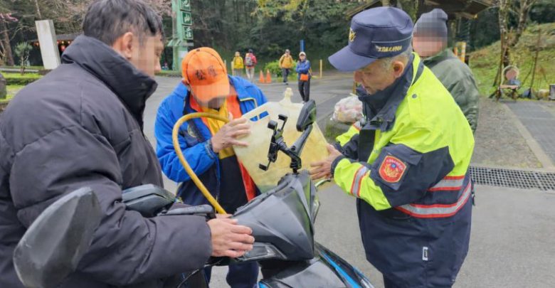 【記者林周龍/大同報導】春節連假期間天氣晴朗,不少遊客趁著難得假期,紛紛前往山區旅遊,今(19)日早上7時15分,明池山莊停車場一名外籍移工,因機車油量不足向警方求助,警方獲報後立即到場協助,順利排除狀況,展現為民服務的熱忱。