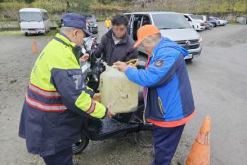 熱心的張姓民眾撥打110報案,表示明池山莊停車場有外籍移工機車油箱用罄需要協助,三星分局接獲通報後,隨即派遣明池派出所副所長蔣銀星與警員邱小明趕赴現場處理,並順利協助該名外籍移工補充油料,讓行程得以繼續並平安返程。