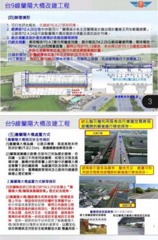 為確保蘭陽溪流兩岸安全將廢止舊蘭陽大橋歷史建築.保留第一跨橋墩及堤上平台作為保存歷史記憶,以期文化保存與安全治理兼顧共創雙贏局面