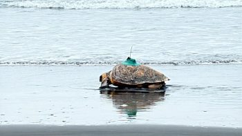 岳明國中小校長黃建榮說,學校每年舉辦4次淨灘,學童平日就具備環保意識,這次親眼見證背甲滿是傷痕的「碳吉龜1號」,更能深刻體會海廢與人為活動對海洋生物的威脅。