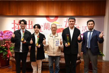 (宜蘭大新聞中心/宜蘭報導)iENA德國紐倫堡國際發明展今年已邁入第77(屆)年,為全球首創、歷史最悠久之創意發明展,每年來自世界各地約有500~800多件作品參賽。本(114)年度參展單位中原大學,其參展作品主要應用於「全內反射散射量測的裝置與方法」,榮獲金牌肯定,另參展單位慈濟大學,參展作品「智能約束裝置」,榮獲銀牌。前述得獎作品,其中發明人之一,包括李祐瑋、游子毅及楊佳豪,皆為宜蘭人,縣府肯定宜蘭在地縣民為國爭光,林代理縣長於114年12月11日在縣長會客室接見得獎者,並給予表揚勉勵,鼓勵工商學術界研究、創新及發明。