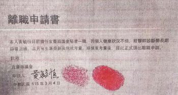 黃毓恒今(4)日透過臉書傳給議會辦公室女職員,他提出的離職申請函內容如下: