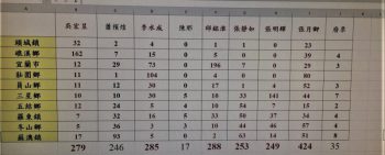 民進黨宜蘭縣黨部主委選舉各鄉鎮開票結果: