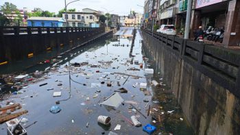 羅東倉前路地下道積水高達3米,水面飄浮著大批各式各樣的垃圾,如拜拜燒銀紙專用的金桶,保麗龍,花盆,瓦斯桶,紙箱,木板等等,宜蘭縣政府今天上午派出工程人員及數台移動式的抽水機,進行清理工作,至下午工程人員馬不停蹄工作,終於把地下道積水抽乾,垃圾雜物清除完畢恢復正常通車。