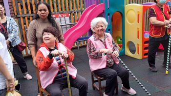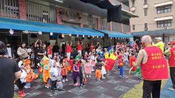 今天是西洋萬聖節,天氣雖然濕冷,但活動現場充滿溫罄熱情,111位長輩及小朋友齊聚於小甜甜幼兒園,爺爺、奶奶們手持閃亮亮拐杖,小朋友以萬聖節主題裝扮,齊跳111拐杖舞,增加整場活動趣味性,快閃舞蹈結束後,小朋友拿著發票箱走出校園,用熱情及笑容向街上的民眾募集發票,用行動守護在地長輩。