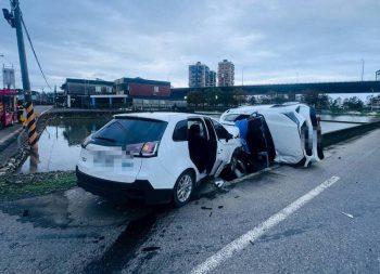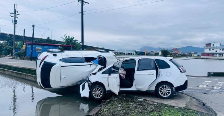 羅東警分局表示,昨天下午2時許67歲陳姓女子駕駛白色休旅車,沿著羅東鎮新群二路往191線(國5側車道)方向行駛,19歲林姓男子駕駛白色轎車從新群一路往中山路一段199巷行駛,2車行經事故路口時碰撞,導致休旅車側翻,轎車車頭全毀,都差點掉進路旁農田。