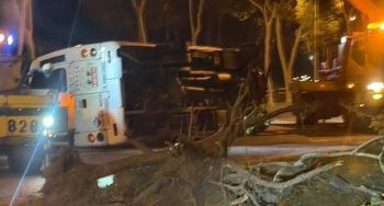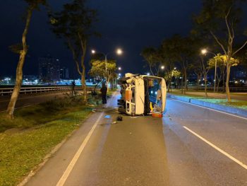 羅東分局據報,於昨日晚間22時12分時許,傳藝路往五結方向快車道發生交通事故,警方獲報後立即派員前往處理,一度封鎖該路段,以維持雙向交通安全,初步調查,該起事故係吳姓民眾(49年次)駕駛營業用大客車沿傳藝路往五結方向行駛駛出車道, 自推路樹造成車輛翻覆,駕駛未受傷,經檢測無酒精反應,詳細肇事原因待釐清中。